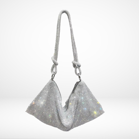 Designed for elegance and extra sparkle, this luxurious evening bag features a dazzling crystal exterior, a unique knotted handle, and a secure closure—perfect hanging over your shoulder.
